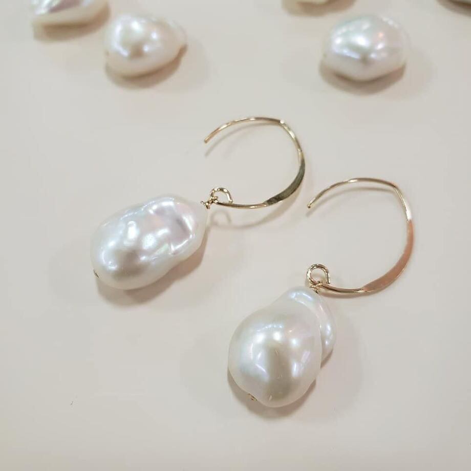 そんな輝きのバロックパールピアスです