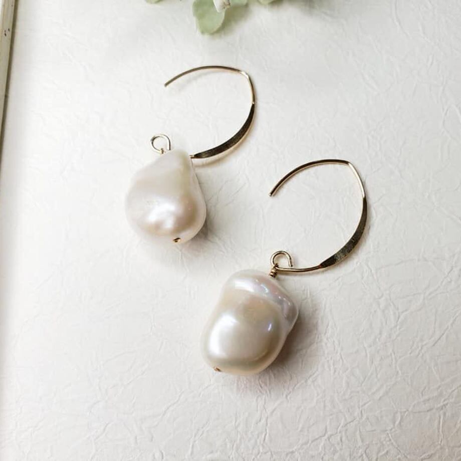 ぷっくりバロックパールピアス