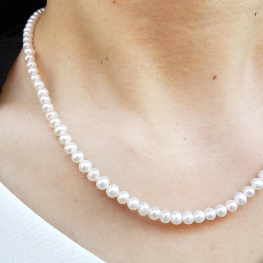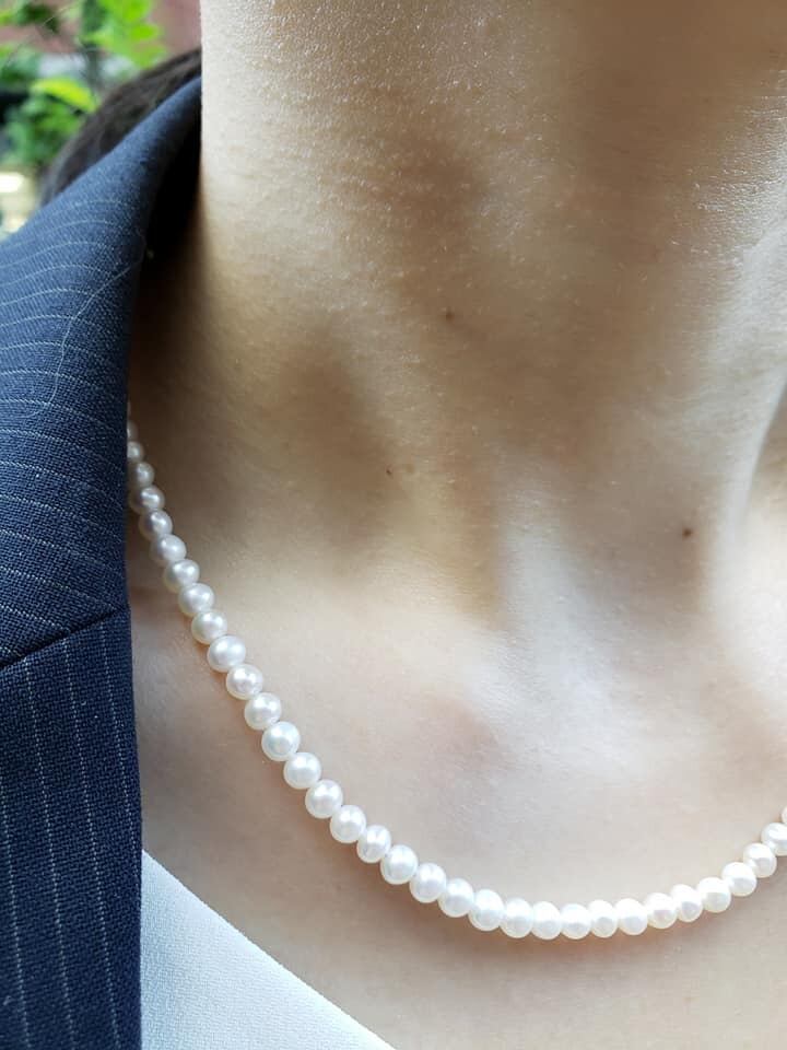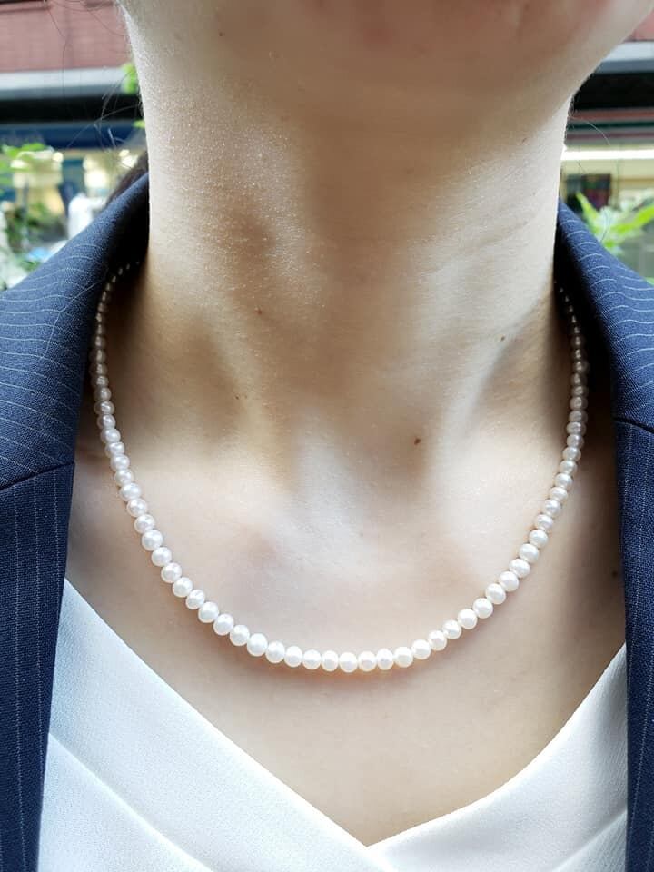* 貝が作りだす本物の真珠のため、完全な真円ではない玉もございますが、輝きの強い綺麗な真珠です。当店でも人気のおすすめのお品です。
